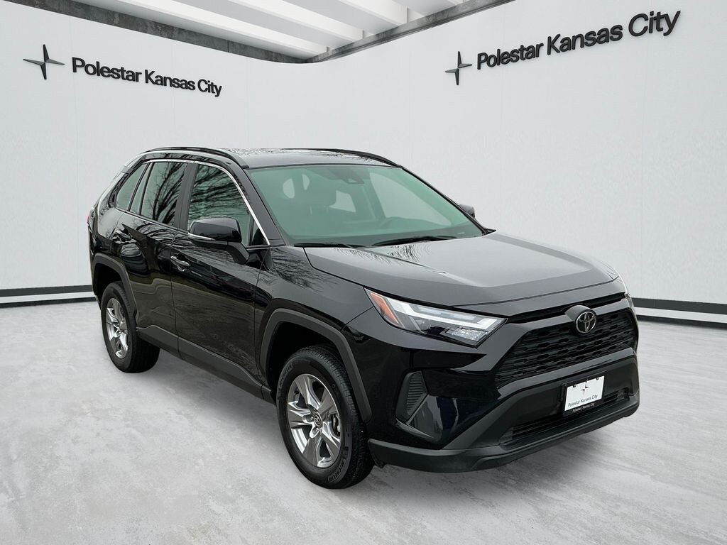 Black 2025 Toyota RAV4 XLE FWD 8-Speed Automatic 2.5L 4-Cylinder DOHC Dual VVT-i Cloth, 6 Speakers, Heated door mirrors, Power door mirrors, Steering wheel mounted audio controls.